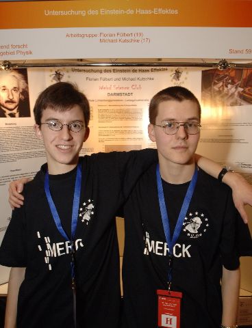 Untersuchung des Einstein-de-Haas-Effekts --- Jugend Forscht 2006Albert Einstein und Wander de Haas haben im Jahr 1915 ein Experiment durchgeführt, das die "Ampère'schen Molekularströme" als Grundlage des Ferromagnetismus beweisen sollte. Obwohl dieses Experiment letztendlich fehlschlug, nennt man heute den benutzten Effekt den Einstein-de-Haas-Effekt. Wir haben im Einsteinjahr 2005 das historische Experiment so modifiziert, dass es möglich war, mit Hilfe des Einstein-de-Haas-Effektes den Landé-Faktor richtig zu 2 zu bestimmen. Dadurch konnten wir zeigen, dass Einsteins Idee im Prinzip richtig war, der Ferromagnetismus jedoch auf dem quantenmechanischen Elektronenspin und nicht auf dem klassischen Bahndrehimpuls beruht.Michael Kutschke und Florian Füllbert letzte Änderung: 07.01.2010 |