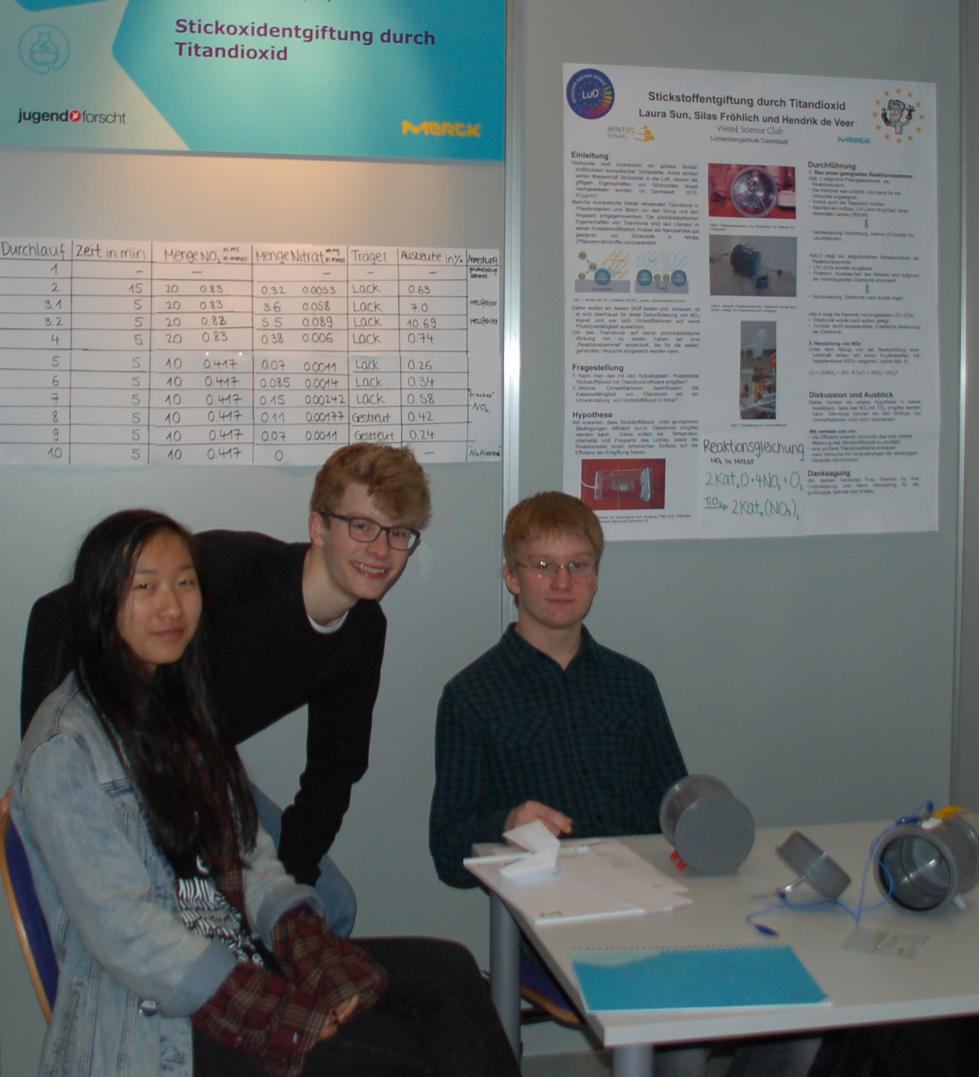 Projekte des Weird Science ClubJugend forscht Landeswettbewerb 2018Vom 9.4. - 10.4. fand bei Merck in Darmstadt wieder der Landelswettbewerb Jugend forscht statt. Nach weiteren intensiven Wochen der Arbeit, unzähligen Messungen mit verschiedenen Sensoren, dem Ersatz von Sensoren nachdem die alten 'vergigftet' waren, endlich erfolgreicher Anpassung der Programmierung, Messungen mit Prüfgas bei den Maschienenbauern an der TU Darmstadt und mehr Fragen als Antworten haben sich Jeannette Koch, Jacqueline Koch und Elena Lindner mit ihrem Projekt zur Evaluation von low cost Stickstoffdioxid-Sensoren einer unglaublich starken Konkurrenz im Fachbereich Technik gestellt. Mit nach Hause nehmen sie zahlreiche neue Ideen und Anregungen sowie wertvolle Erfahrungen. Ihre Arbeit wurde von sehr kritischen Juoren mit dem Sonderpreis 'Qualitätssicherung durch zerstörungsfreie Prüfung' belohnt. LuO wird beim Regionalentscheid 2018 nach 2014 erneut als Jugend forscht Schule ausgezeichnetDie Preisverleihung dazu findet im Juni in Braunschweig statt. Jugend Forscht Regionalenscheid Hessen Süd am 23.2.2018