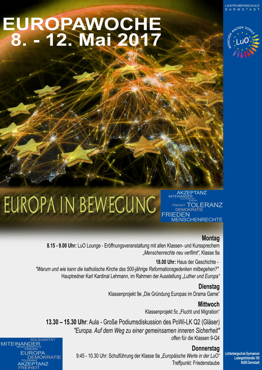 2017: Die Lichtenbergschule Darmstadt und das Hessische Staatsarchiv Darmstadt präsentieren gemeinsam die Ausstellung „Luther und Europa“: