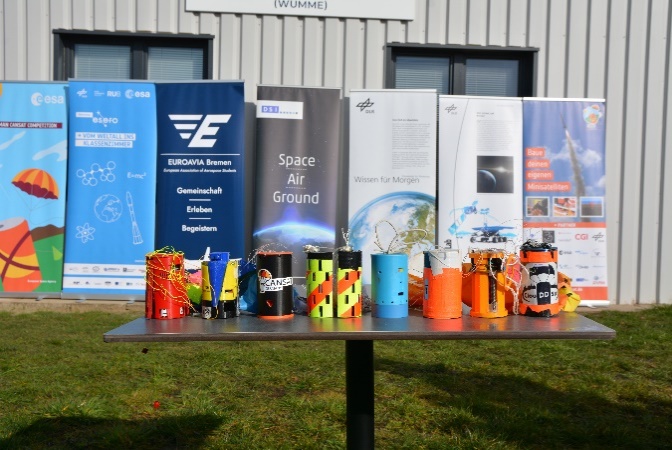Der LuO-Cansat (dritter von links) mit seinen „Konkurrenten“ aus ganz Deutschland