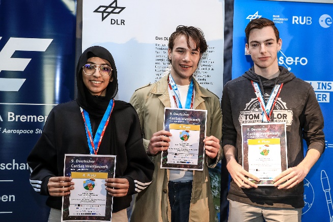 Ivan, Aaminah und Matej aus dem sechsköpfigen LuO-Aerospace-Team konnten gemeinsam mit ihrem Betreuer Dr. Matthias Moosmann dann das große Finale in Bremen besuchen. Dort erwartete sie zusammen mit den Weltraumbegeisterten der anderen sieben Teams ein buntes Rahmenprogramm rund um das Thema Weltraumtechnik. Besuche bei den Forschungszentren ZARM und DLR und bei den Satellitenbauern OHB und Airbus standen auf dem Programm. Höhepunkt war dann aber der Raketenstart am Flugplatz Rothenburg, bei dem die LuO-Aerospacer den Flug ihres Satelliten live verfolgen konnten und den gelandeten Satelliten dann gleich für die Datenauswertung entgegen nehmen konnten.