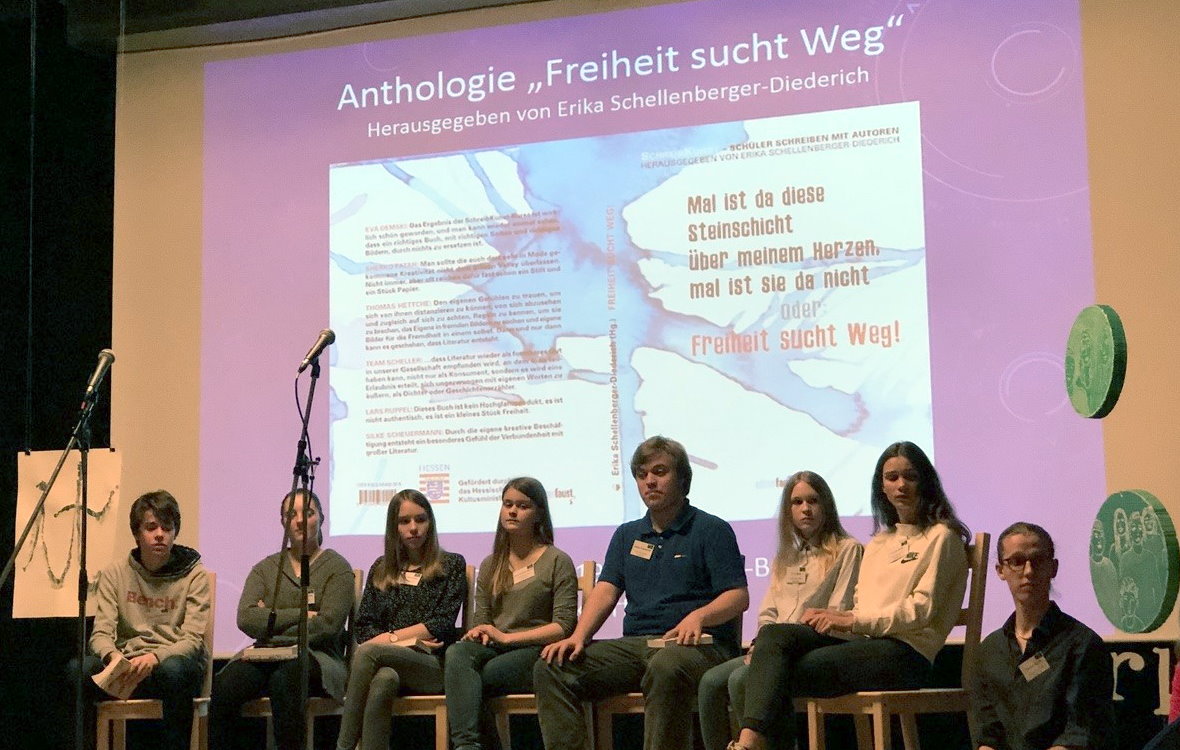 Am 26. Februar 2019 lud das Programm “SchreibKunst” des Hessischen Kultusministeriums in die Max-Beckmann-Schule in Frankfurt ein. Anlass war die im Oktober 2018 auf der Frankfurter Buchmesse vorgestellte und von Schülern und Autoren gemeinsam verfasste Schreibkunst-Anthologie “Freiheit sucht Weg“.