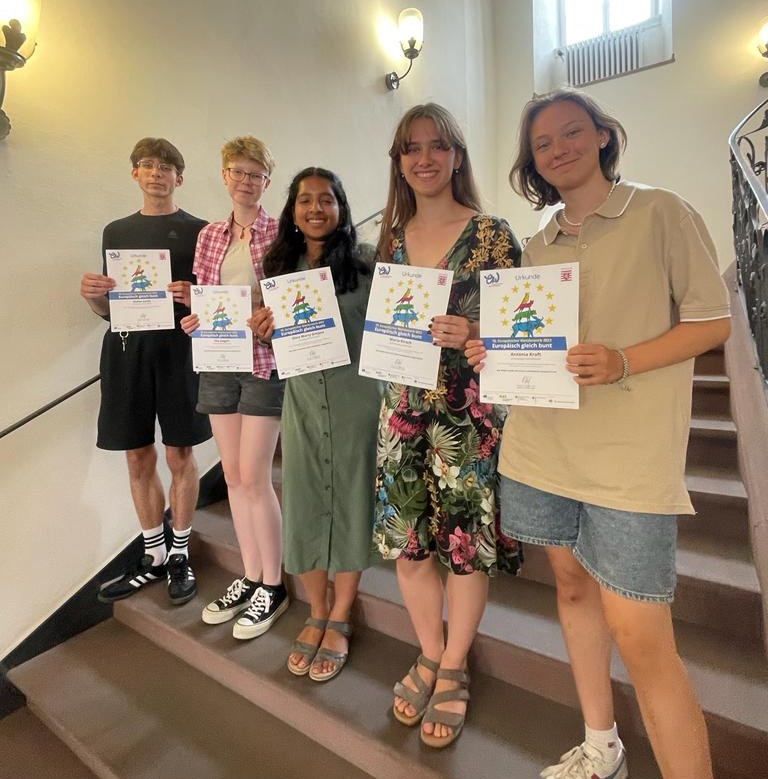 Am 27. Juni wurden im Ludwig-Bergsträsser-Saal im Regierungspräsidium Darmstadt die Landespreise des 70. Europäischen Wettbewerbs mit dem Thema „Europäisch gleich bunt – Junge Visionen für ein Europa der Vielfalt“ an die Gewinner*innen der Schulen in Darmstadt und dem Landkreis Darmstadt Dieburg verliehen.