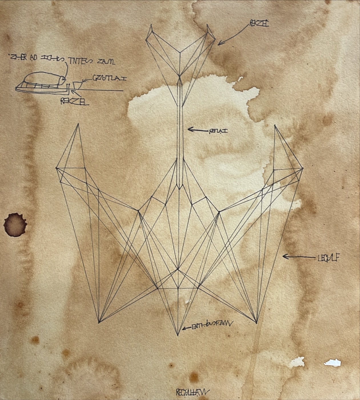 Unser „Bild des Monats Januar” wurde von Vadym im Kunstunterricht der 5e angefertigt. Mit präziser Konstruktion und einer selbstausgedachten Geheimschrift präsentiert er eine geheime, womöglich lange verlorengeglaubte Erfindung. Die Bildidee ist angelehnt an die antiken technischen Zeichnungen verschiedener Flugmaschinen von Leonardo da Vinci, Otto Lilienthal und von den Gebrüder Montgolfier.</