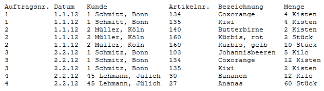 Gegeben ist die nachfolgende Relation für einen Obsthändler.