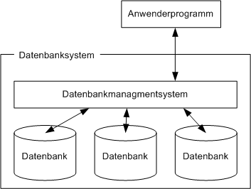 In den 1960er Jahren wurde daher als neues Konzept eine separate Softwareschicht zwischen Dateiverwaltung und Anwenderprogramm eingeführt. Ein Datenbanksystem - bestehend aus dem Datenbankmanagementsystem (DBMS) und den Datenbanken - repräsentiert dieses Konzept.