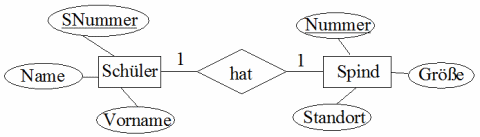 Wir betrachten die ER-Beziehung Schüler hat Spind.