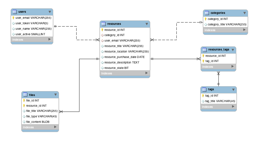 Ressource (RessourceID, ↑Emailadresse, ↑KategorieID, RessourceTitel, Anschaffungsdatum, Ort, Status, Beschreibung)